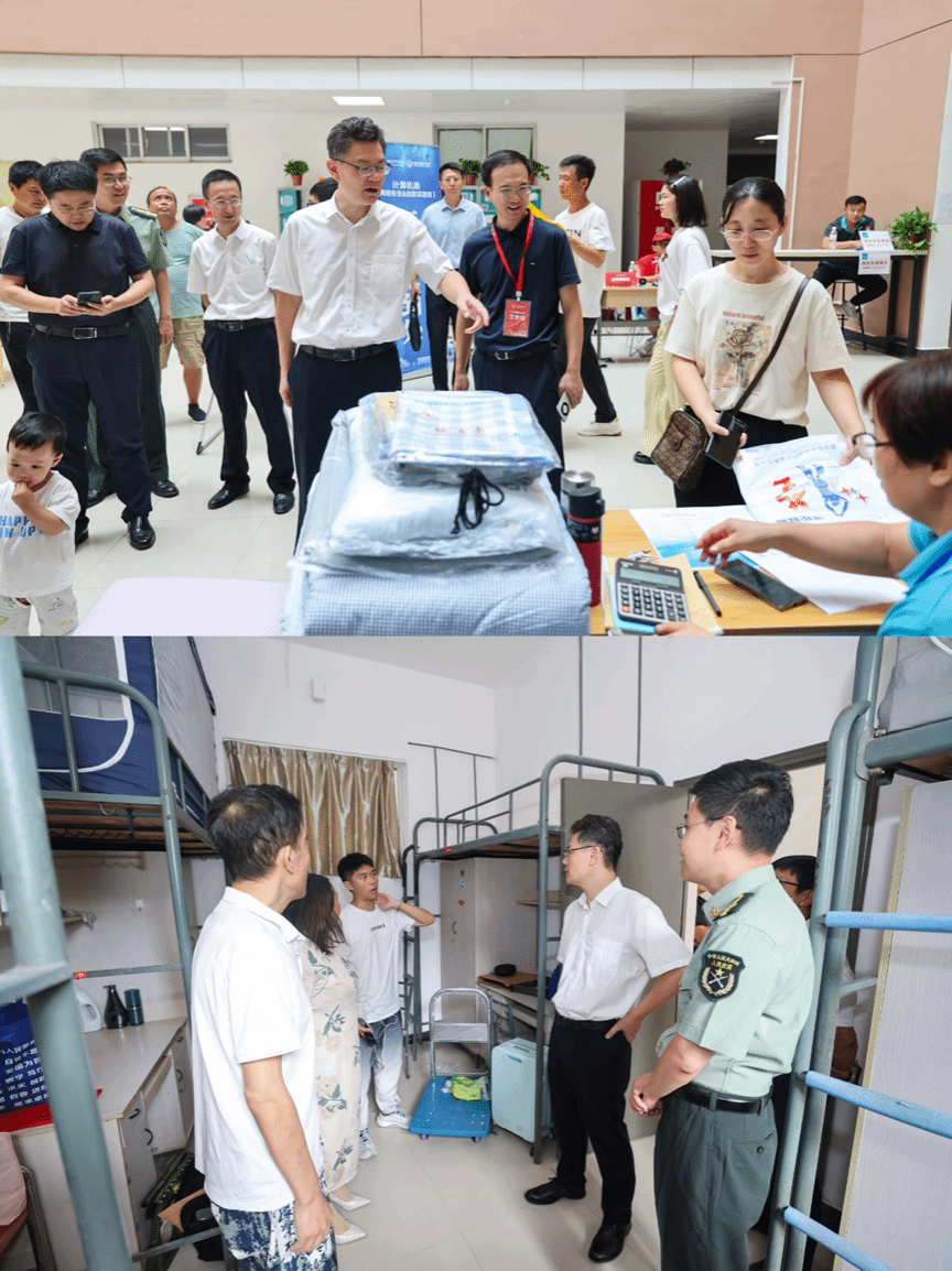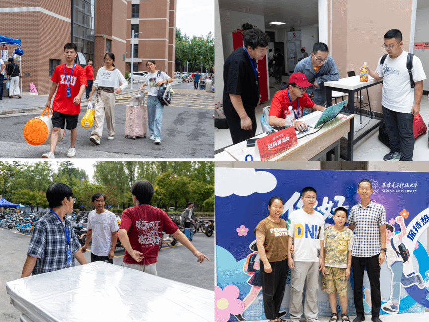新生接待工作情况,慰问参与迎新的师生,并走入材料类学生宿舍与新生亲切交流,热情欢迎他们加入西安电子科技大学这个大家庭,为迎新工作增添了温暖与动力。