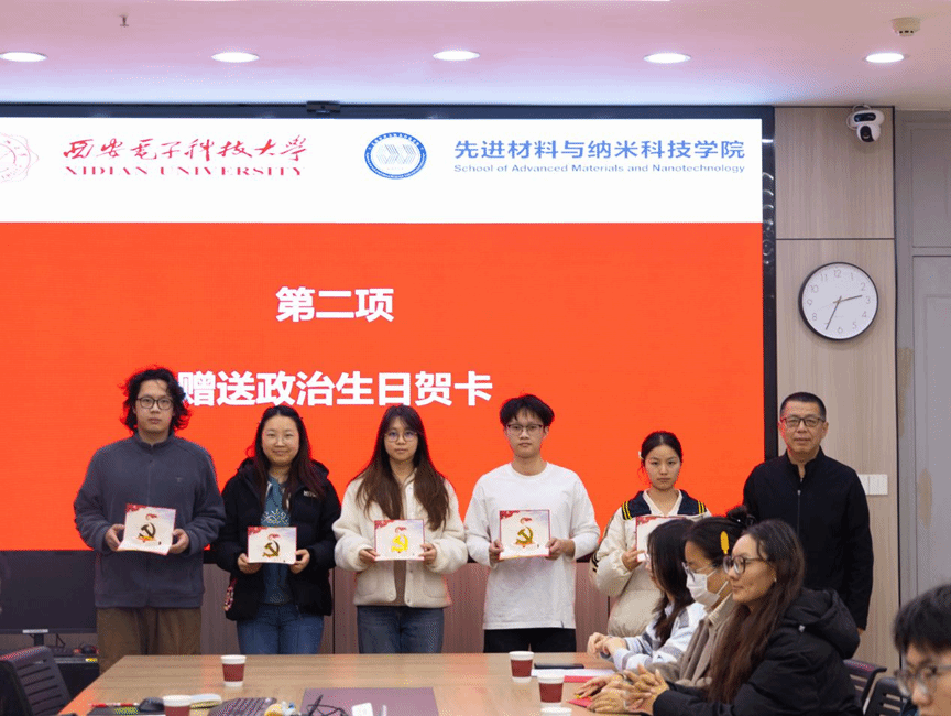 活动伊始,在学生党员李佳泽同志的领誓下,全体党员面向党旗庄严列队,重温入党誓词。铿锵有力的誓言回荡在会议室中,既是对入党初心的回溯,也是对使命担当的重申,让每一位党员再次接受了深刻的党性教育和精神洗礼。随后,朱文凯为党员代表颁发“政治生日”贺卡,勉励大家牢记党员身份,永葆政治本色,在学习和生活中发挥先锋模范作用,进一步强化了学生党员的身份认同感、责任感和使命感。