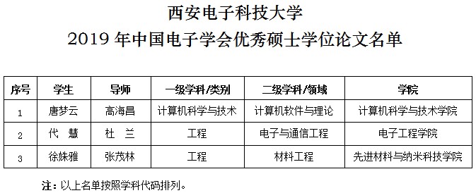 据悉,2019年度中国电子学会共评选出优秀博士学位论文26篇、优秀硕士学位论文23篇。2019年,学校推荐7篇博士学位论文、6篇硕士学位论文参加中国电子学会优秀学位论文评选, 最终,周久人、周笛、吴凯3名博士研究生的论文入选优秀博士学位论文,唐梦云、代慧、徐姝雅3名硕士研究生的论文入选优秀硕士学位论文,入选论文数量与清华大学并列排名第一。