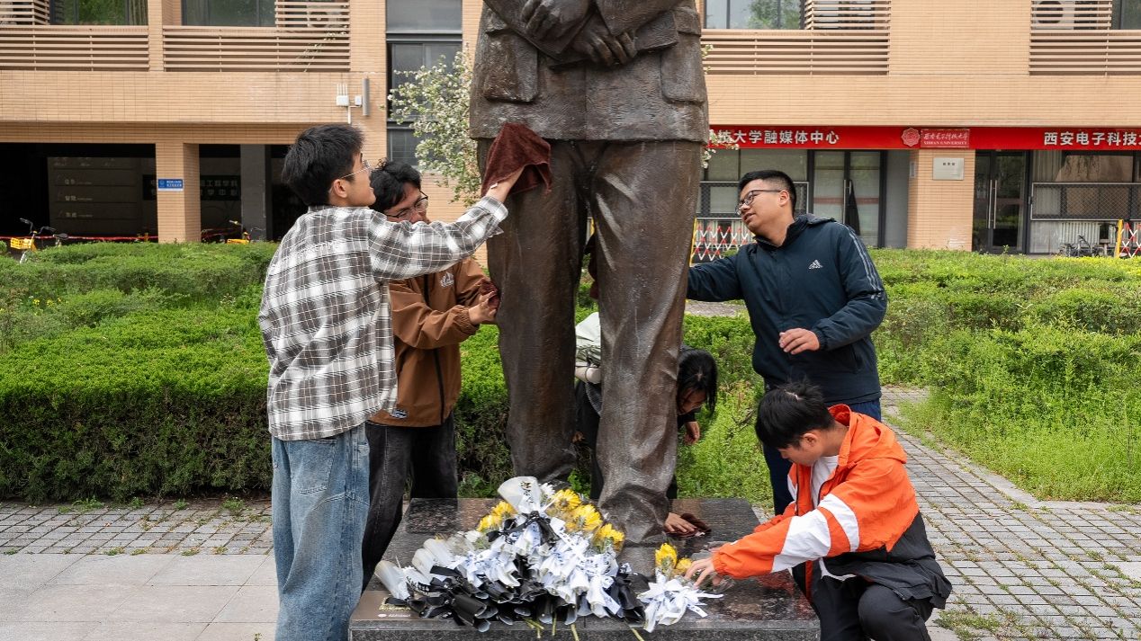 团委组织50余名学子前往长安校区毕德显雕像处开展清明祭扫。