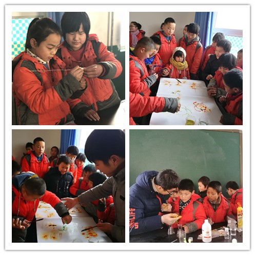 特色与学生兴趣相结合的趣味化学实验受到了学生们的热烈欢迎。烧杯中溶液的五彩变化引起学生们阵阵惊呼。同学们对本次的化学实验活动表现出了极大地兴趣和热情,表示要刻苦学习,争做科技人才。随后团委开启了工艺小车的制作教学活动,精美的手工小车让学生们们爱不释手,迫不及待地想要去制作一辆属于自己的小车。最后,孩子们把自己的作品高高举起,向大家展示自己的作品。在一片欢声笑语中,趣味扶志活动也渐入尾声。