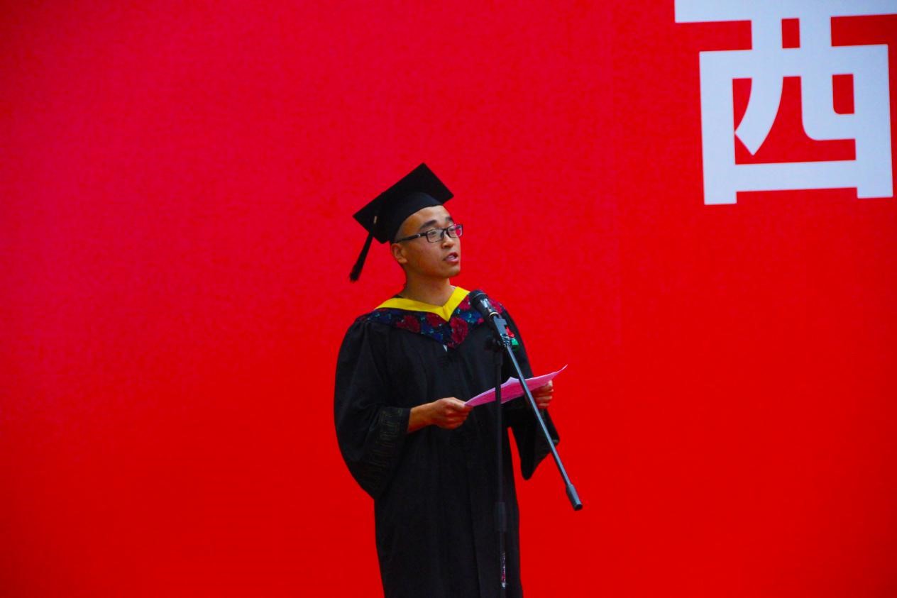 硕士研究生代表张晨阳、本科生代表李泊龙分别发言,在发言中他们回忆了在校期间与老师、同学之间一幕幕难以忘怀的时刻,有刚入学对校园生活的憧憬,有多年生活的点点滴滴逐渐升华的强烈情感,有在求学期间的收获与成长,几年的西电求学生涯,终将为每一位毕业学子刻上深深的西电烙印。不忘初心,砥砺前行,他们代表2018届WG电子