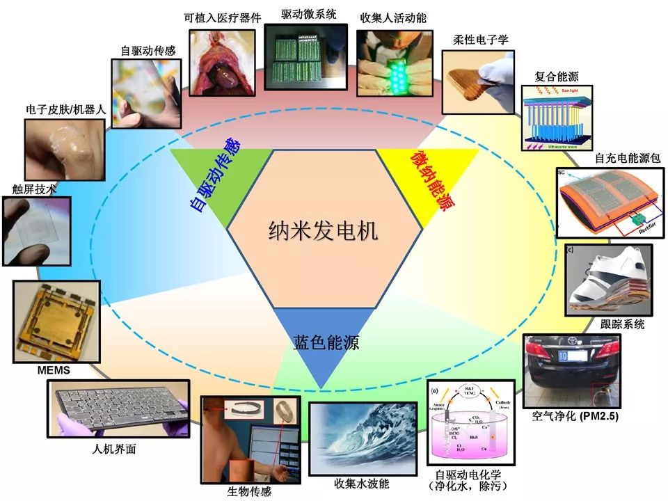 (王中林院士开创的纳米发电机及其自驱动系统的学科发展图)