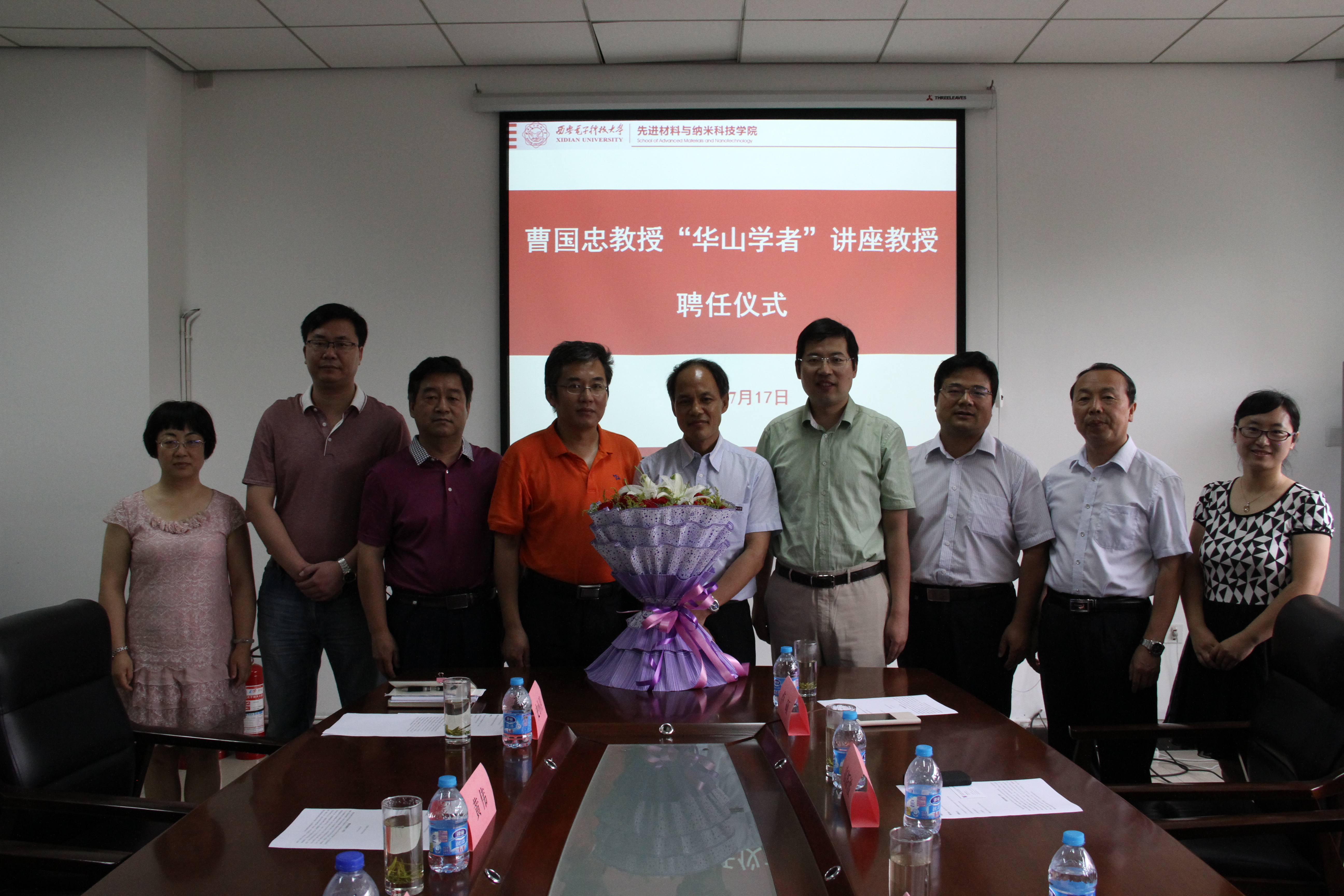 “华山学者”讲座教授。高新波指出,曹国忠教授学术成就卓越,是美国华盛顿大学材料科学与工程系波音-斯坦纳终身讲席教授,是国际知名的纳米材料领域的专家,他的加盟将进一步促进学校材料学科的发展。希望WG电子