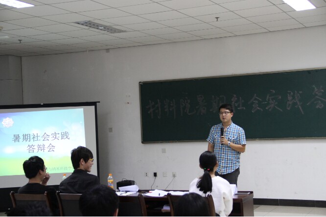 (通讯员 李泊龙)9月10日晚7点,在南校区G楼118会议室,先进材料与纳米科技学校团委举办了暑期社会实践答辩活动。14级辅导员李伟嘉,学生会主席郝思远,科协主席沈泽巍,团委实践部部长易翠担任答辩评委,团委各部门成员以及部分新生代表参加了此次答辩。