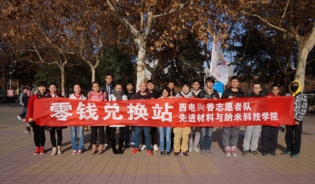 “與香”志愿者服务队在北校区附近公交车站为大家提供换取零钱的服务,帮助市民解决日常生活中的问题。