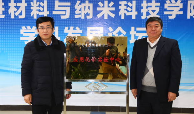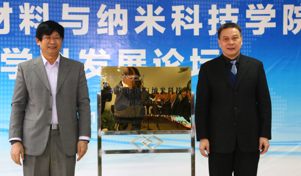 党委书记陈治亚和欧阳晓平院士共同为先进材料与纳米科技研究中心揭牌
