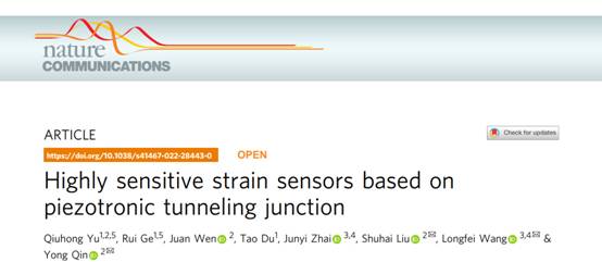 先进材料与纳米器件研究所和兰州大学合作的研究成果以“Highly Sensitive Strain Sensors Based on Piezotronic Tunneling Junction”为题发表在国际知名期刊Nature Communications上。博士生于秋红为本文第一作者,西电WG电子