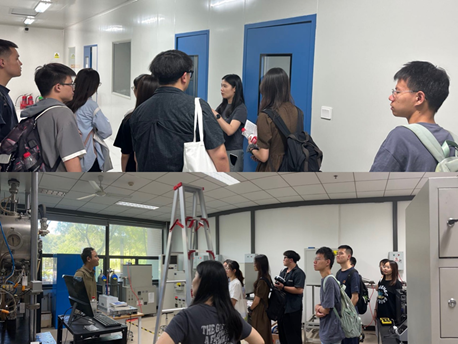 姜雪老师带领同学们参观了热防护涂层性能检测实验室、材料与器件制备分析中心、材料制备等实验室。宽敞明亮的实验条件,高端精密的实验仪器,细致入微的实验环节,都深深吸引着同学们的注意力。通过参观让同学们实地了解各实验室的研究内容和方向,感受各个实验室的研究环境和研究氛围。