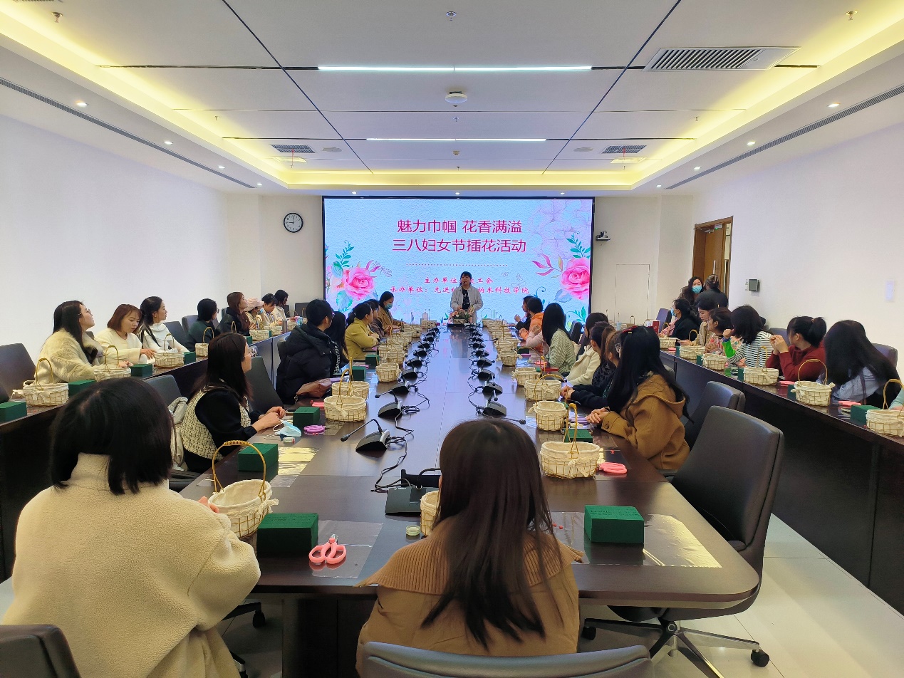 和校工会联合面向全校女教职工在南校区112会议室举办“魅力巾帼 花香满溢”为主题的三八妇女节插花讲座活动。全校女教职工50余人参加本次活动,活动由WG电子