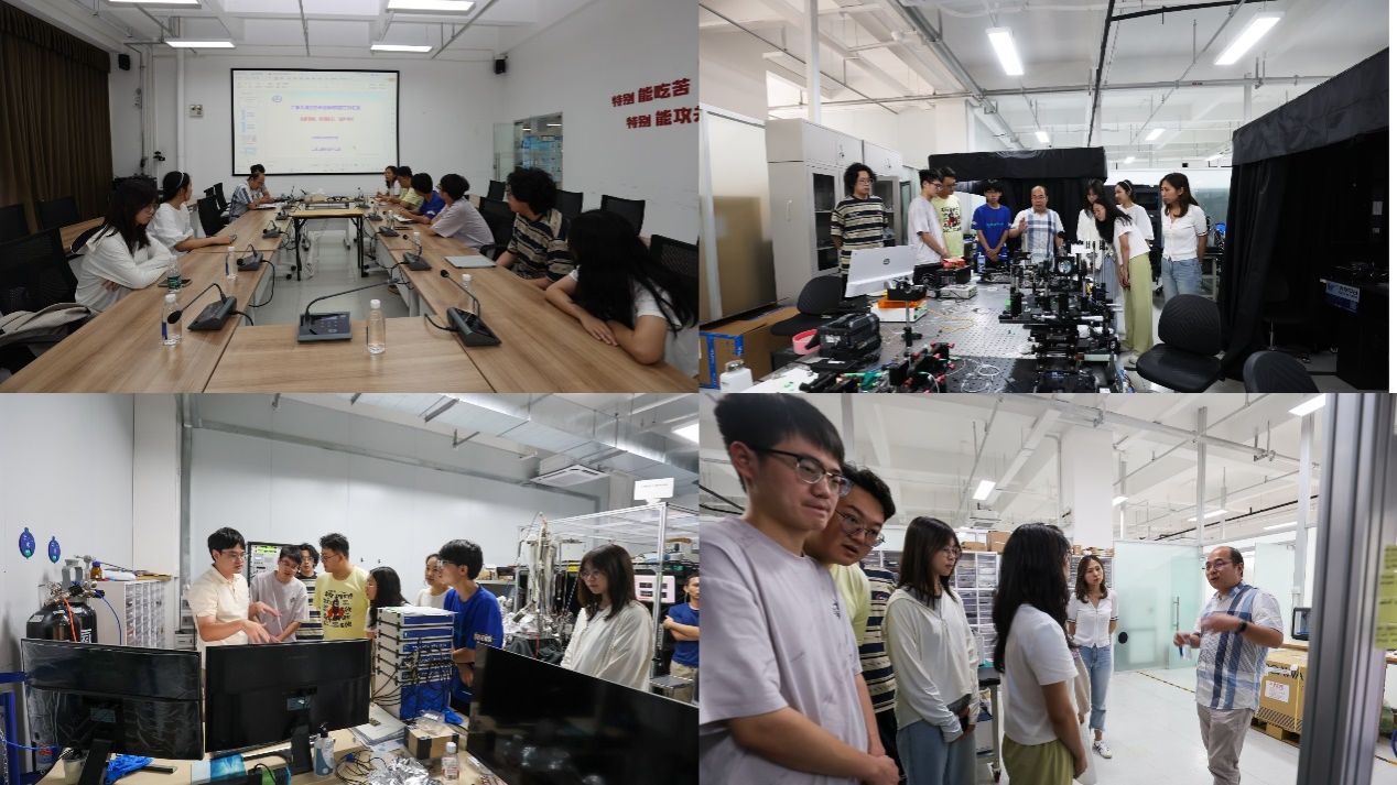 空天信息研究院粤港澳大湾区研究院聚焦太赫兹源和探测器的研发,通过探索新理论、新方法、新材料、新工艺,从微波和光学两个方向瞄准太赫兹核心技术的突破,形成一批引领国际的原创性理论方法和核心器件技术,推动信息科学、现代物理学、材料科学、空间科学等领域的发展。随后,同学们参观了院内多个实验室,王振友结合正在进行的实验与实验设备应用领域向同学们介绍了个人在空天信息技术领域的探索历程和研究成果,并现场邀请同学们观察实验项目,此外他还就当前科技发展趋势、空天信息材料研究方向以及青年学子如何投身科研事业等话题进行了深入浅出的讲解。
