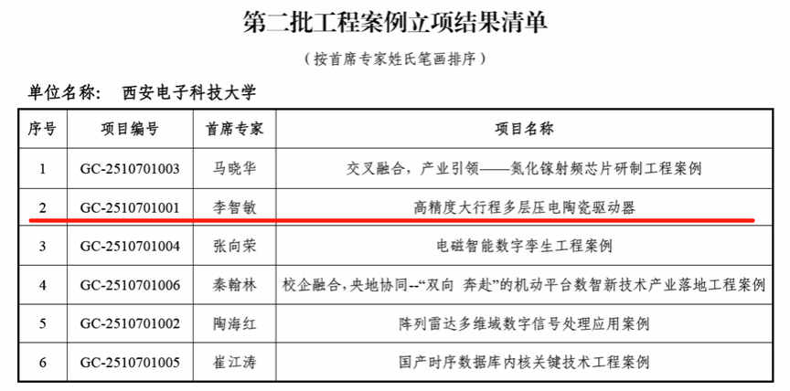 李智敏教授负责的《高精度大行程多层压电陶瓷驱动器》案例获得立项,学校共有6项案例成功入选。