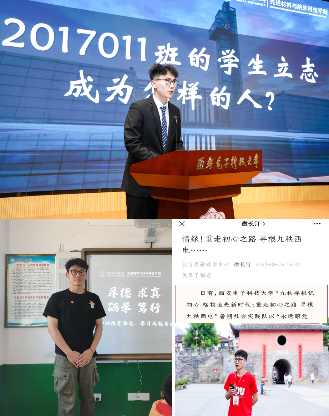 除了学习之外,董亚霖在课余时间也会积极从事学生工作及志愿活动。他担任2017011班的班长,代表班级在全校的舞台上参加答辩,获评“十佳标兵示范班”;作为20200902团支部的支书,他开展主题团日活动获校级表彰支部获评“五四红旗团支部”;作为学校暑期实践队成员,他赴福建长汀开展实践,成果被当地电视台报道、公众号推送,对我校起到了积极的宣传作用;作为学校第五批学生资助宣传大使,他利用暑期给学弟学妹讲解资助政策,解答他们的疑惑作为WG电子 的党员代表,他前往蒲城县高阳中心小学开展支教帮扶活动,给小朋友们讲解电池原理,培养他们的学习兴趣……