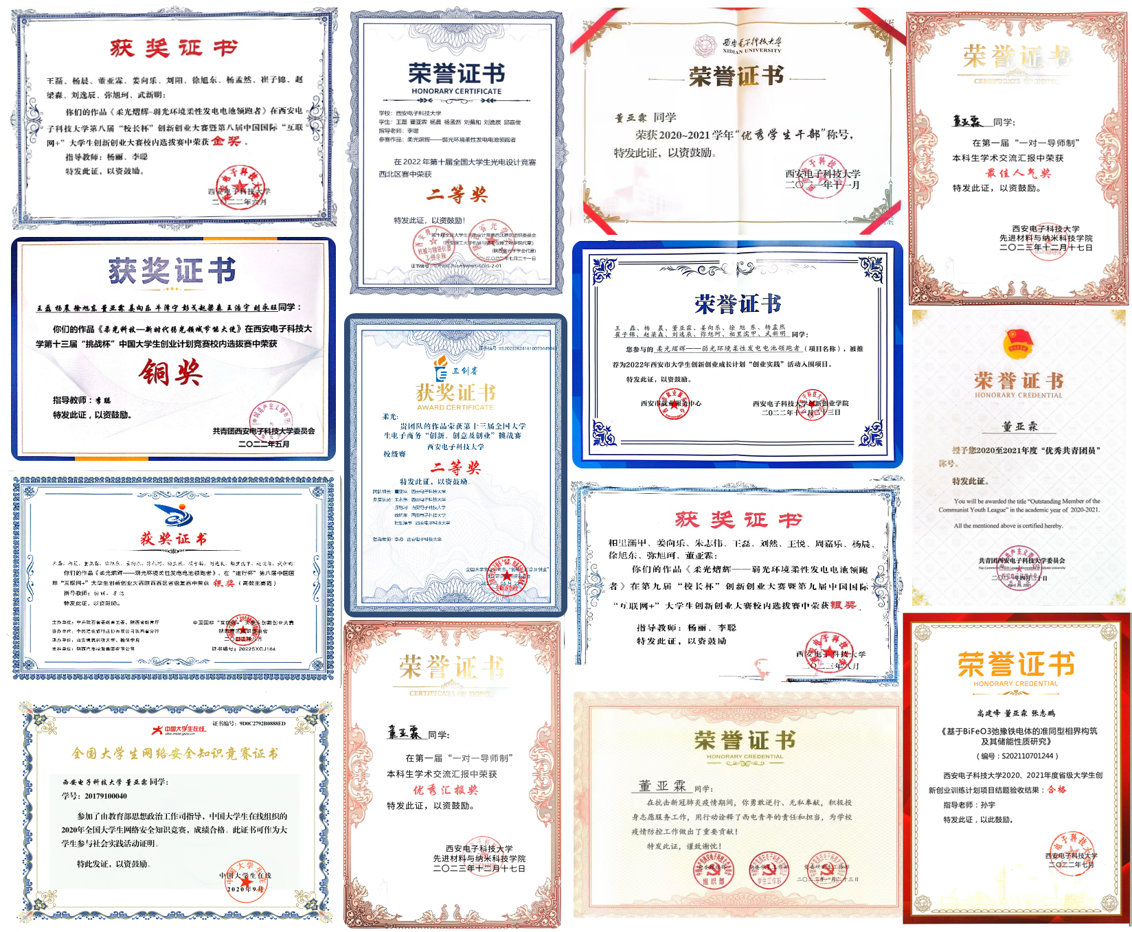一直以来,董亚霖都很重视课程知识的学习除了课上认真听讲、课后及时复习总结之外,多向老师、同学请教是他最擅长的学习方法。“大学的课程知识比较难,幸好WG电子 的任课老师很负责,常常在课后耐心地解答我们的问题;除此之外,身边优秀的同学也是我学习的榜样,和其他同学的交流更能加深我对知识概念的理解正是有了这些良好的学习习惯,董亚霖在高等数学(97)、场论与复变函数(99)、半导体物理(97)等课程上得到了较高的分数。在课业学习之余,董亚霖也积极参与学科竞赛,将所学的专业知识用于实践,加深对知识的理解和应用,目前已经获得了包括中国国际“互联网+大学生创新创业大赛省级银奖、全国大学生光电设计竞赛省级二等奖等省级及以上奖项5项、校级奖项4
