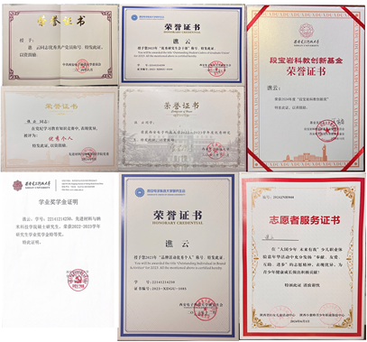 研究生的凝聚力,一定程度上提升了同学们的身心健康水平;担任国家重点实验室原子力显微镜测试员,专注解决测试期间出现的各类技术问题,为广大师生提供良好的测试服务环境;积极参加学校和校博物馆、校史馆组织的志愿服务活动,用真诚和热情为学校师生做好服务工作;主动将自己宝贵的科研心得无私地传授给师弟师妹们,通过思想,实践和学涯规划等多方面引领,助力材料学子全面发展、成长成才。这些宝贵的经历,让谯云深刻认识到,作为一名共产党员,其先锋模范作用的根本在于不忘初心、不负青春、矢志不渝地为国家与人民贡献自己的力量,以实际行动践行党的宗旨。