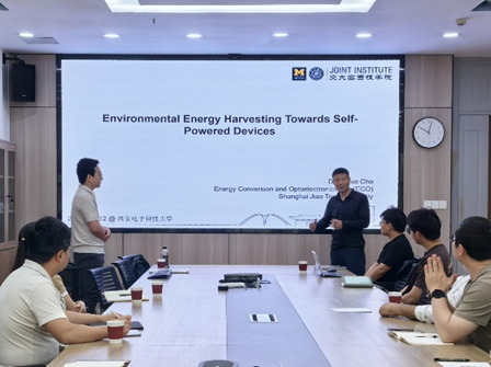 在交流讨论的环节中,Yuljae Cho副教授就“铁电-光电材料的优势和性能改善”与现场师生进行深入探讨,参会师生表示Yuljae Cho副教授的报告中的集成能量收集技术很具有创新性,进一步拓展了自供电设备在可穿戴和环境能源收集的应用。