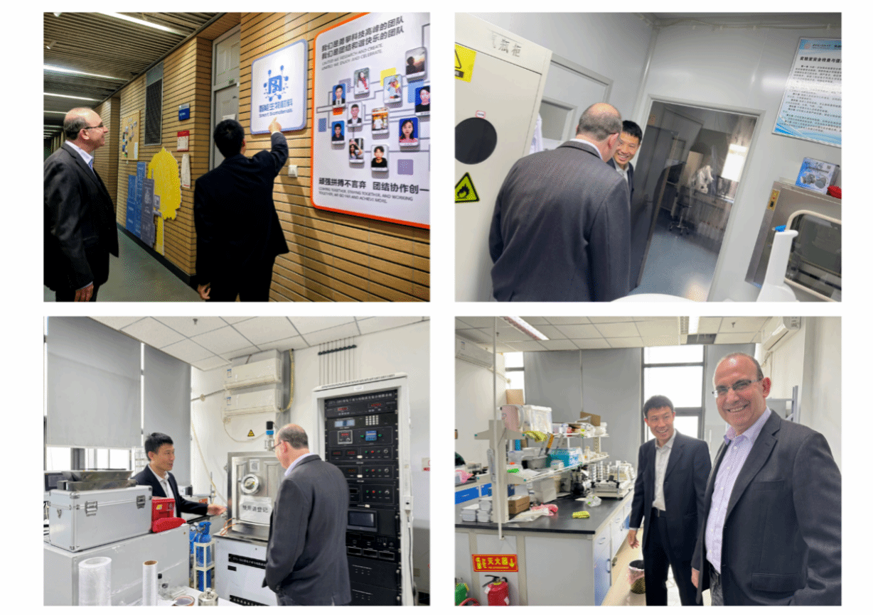 智能生物材料及应用研究所前期多年的科研合作,Ehud Gazit首先参观了智能生物材料及应用研究所,杨如森教授热情接待了Ehud Gazit教授并向他详细介绍了实验室的组成结构和先进设备。在杨如森教授的引导下,Ehud Gazit教授参观了多个实验室,详细了解了研究所在生物材料和纳米技术领域的最新进展,探讨了双方未来可深化合作的领域。