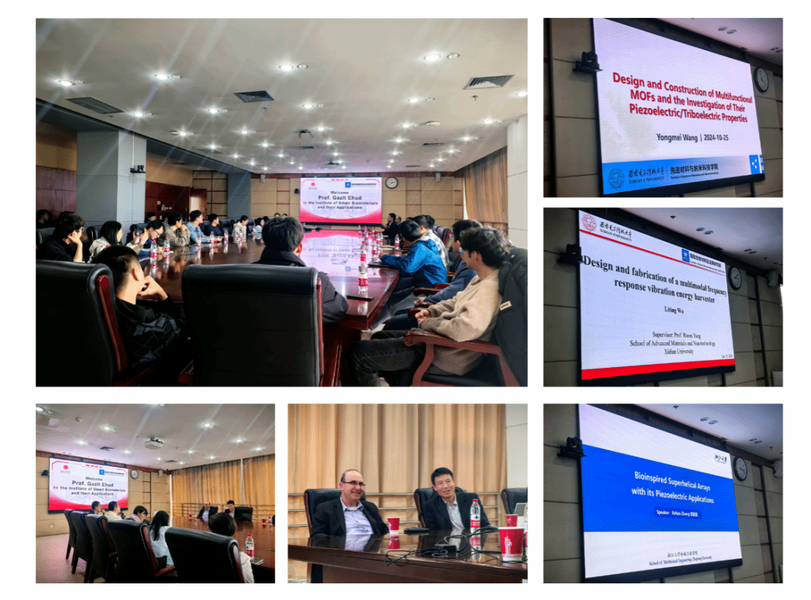 下午Ehud Gazit教授受杨如森教授的邀请参加了研究所师生座谈会,此次座谈会还邀请到了相关方向浙江大学陶凯研究员及其四位研究生。会上,杨如森教授向与会者详细介绍了课题组的基本情况和成员构成,重点介绍了课题组在微/纳米材料的制备技术,以及这些材料在纳米发电机和传感器应用方面的研究成果。随后,青年教师王咏梅展示了她在氨基酸基金属有机框架材料合成及压电性调控领域的研究成果。课题组的吴丽婷、钟明强和范伟强三名博士生也分别汇报了研究进展。陶凯研究员团队的三位研究生也就生物材料自组装领域分别进行了成果汇报。汇报中涵盖了最新的实验成果及在研究过程中遇到的挑战及解决方案,与会者就亟待解决的科学问题进行了热烈讨论。