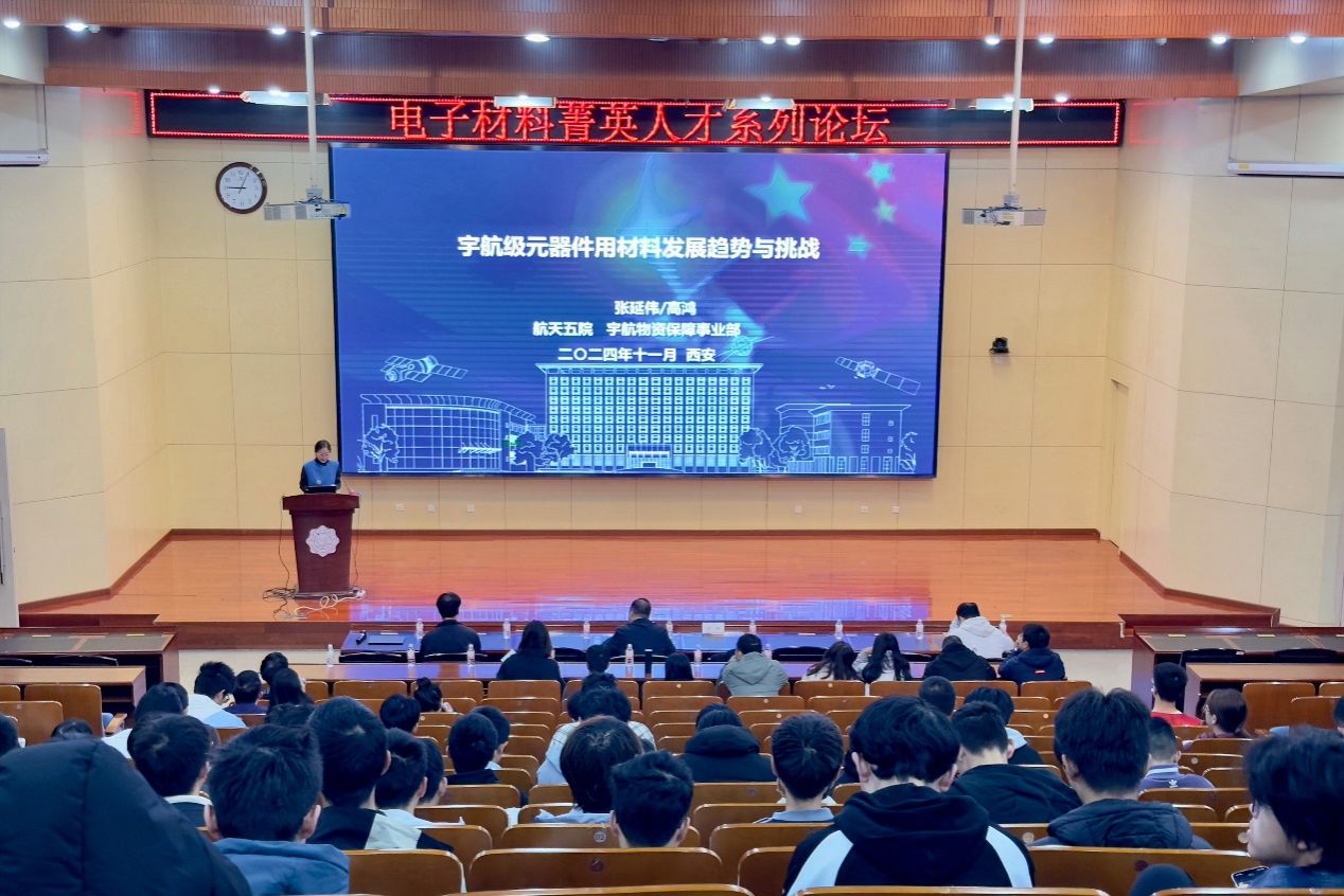 在南校区行政楼210报告厅举办了“电子材料菁英人才系列论坛”。受周益春教授邀请,航天五院XX项目办副总师高鸿研究员以“宇航电子材料发展趋势和挑战”为主题做了一场精彩且内容丰富的报告。报告会由周益春教授主持,教师代表、全体研究生和来自不同专业的两百余名本科生参加了报告会,共同聆听了一场绘声绘色、深入浅出的学术讲座。