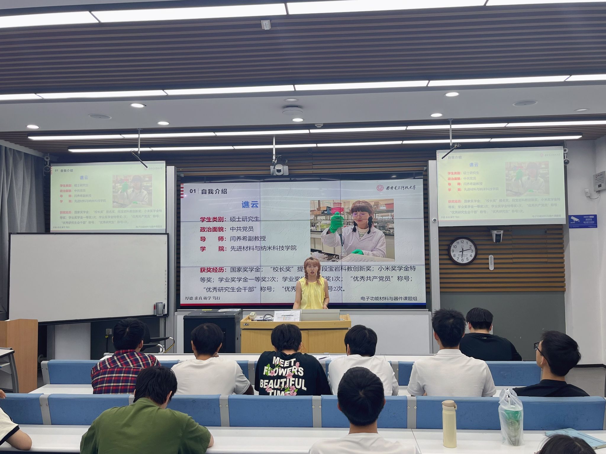 随后,WG电子 的谯云同学分享了取得国家奖学金的科研之路结合自身的学习和科研经历,从目标设定、学习方法、科研实践、时间管理等多个方面进行了毫无保留的分享。强调,获得国家奖学金不仅需要优异的学习成绩,更要有勇于探索的科研精神和服务社会的责任感。的分享干货满满,让同学们深受启发,现场不时响起热烈的掌声。