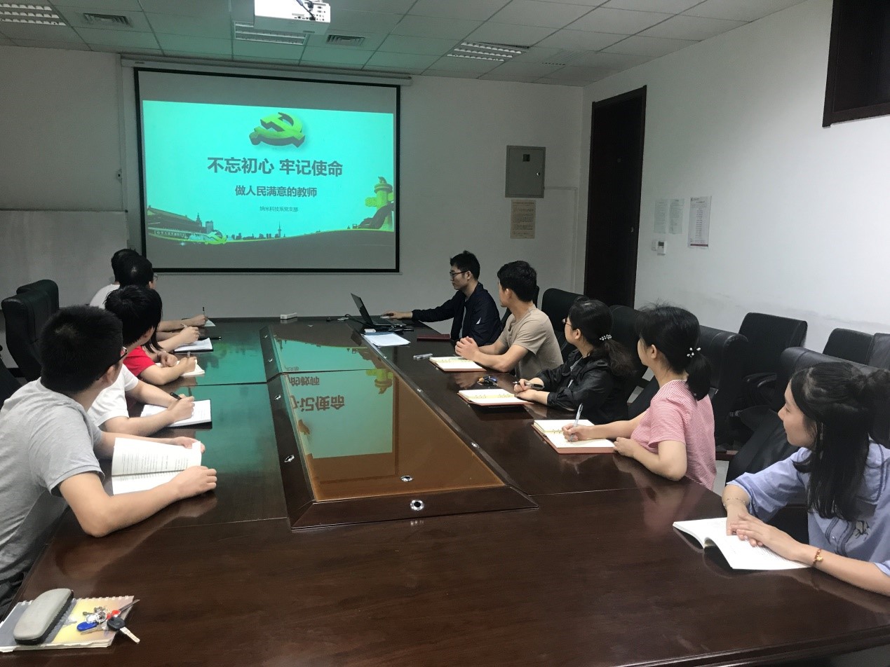 纳米科技系党支部于北校区东大楼216会议室召开“不忘初心、牢记使命——做人民满意的教师”主题党课学习活动。支部全体党员参加了本次学习。