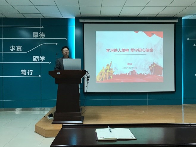 党委副书记程远为2018级硕士研究生党支部讲了一堂生动形象的党课,主题为《学习铁人精神 坚守初心使命》。活动由支部书记李鑫主持,2018级全体党员和积极分子参加。
