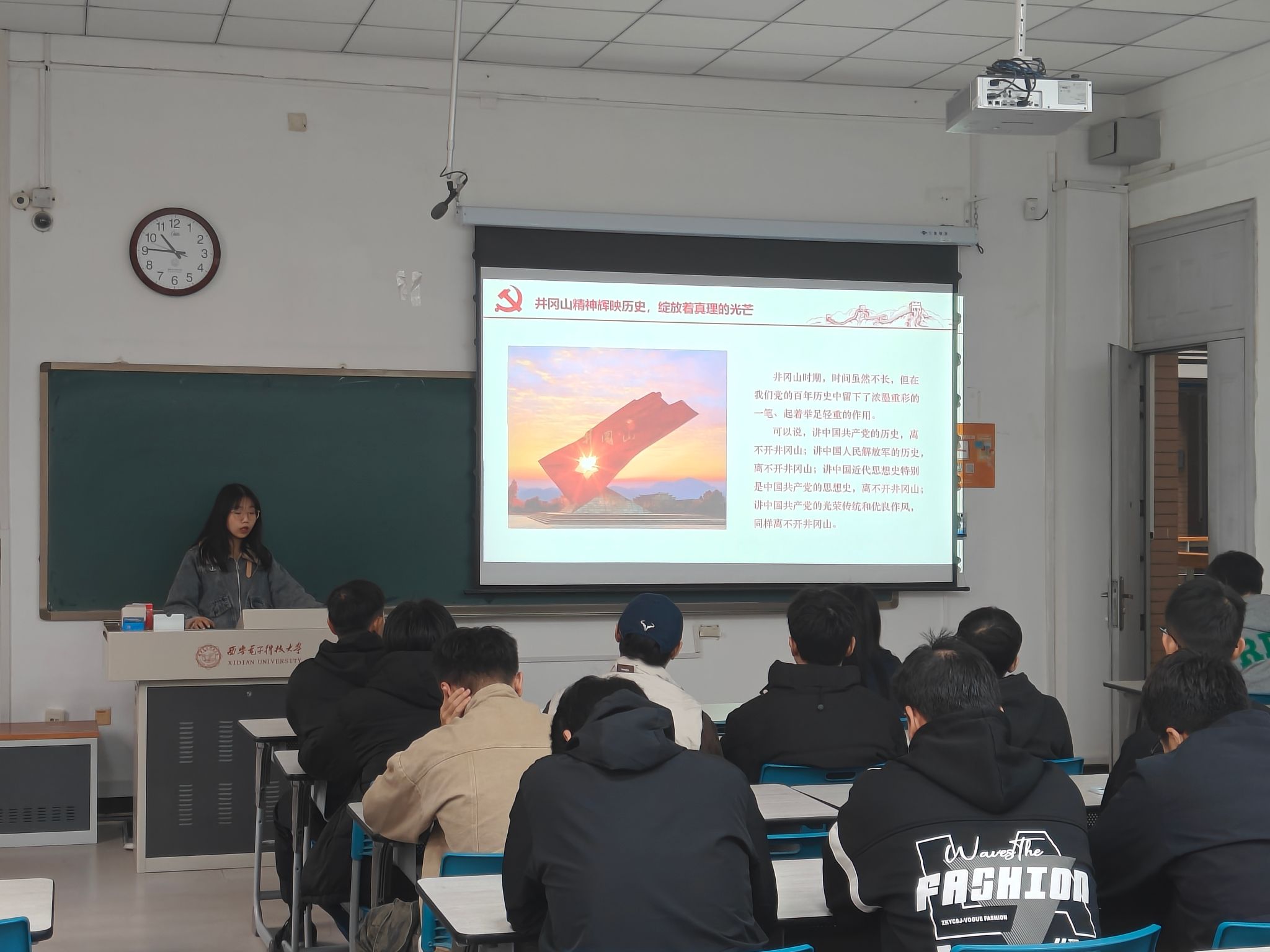 景旭珍同学以“不忘初心,砥砺前行——牢记井冈山精神”为主题,带领大家回顾井冈山时期的革命历史与精神内涵。她讲到,井冈山精神是中国共产党人宝贵的精神财富,体现了我们党坚定信念、艰苦奋斗、实事求是、敢闯新路的鲜明品格。她鼓励党员同志们在学习科研中传承红色基因,以井冈山精神为指引,勇攀科学高峰,服务国家重大战略需求。