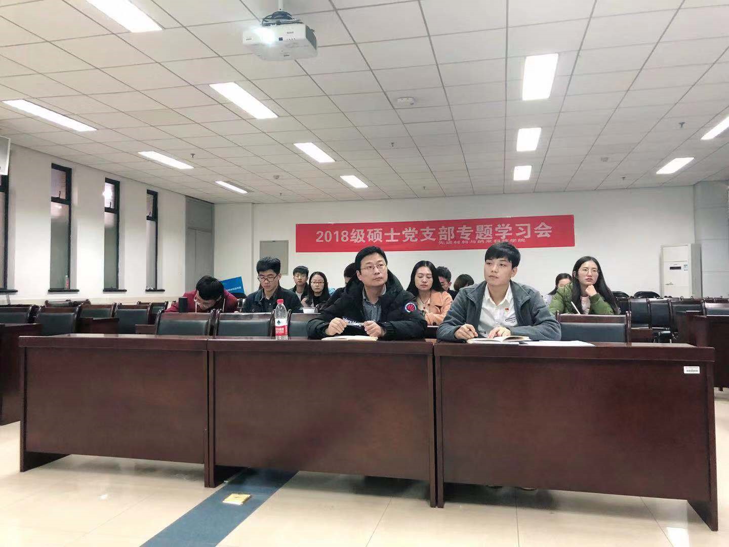 2018级硕士研究生党支部党员大会在G118会议室举行,本次会议围绕《学习贯彻全国教育大会精神》为主要议题展开,15名党员和入党积极分子参会。