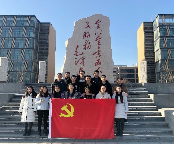 最后,全体党员在学校纪念碑前合影留念,2018级硕士党支部“党员政治生日”主题党日活动和预备党员接收大会圆满结束。