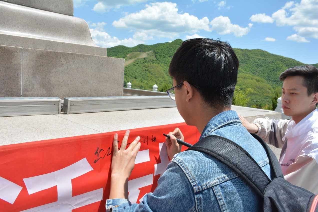 党委副书记程远与大家分享了这次学习参观的感受,强调这次学习吹响了西电材料青年新时代出征的号角,奏响了新时代材料青年的最强音,他号召材料青年向老一辈无产阶级革命家学习,牢记习总书记在五·四讲话中对青年的六点要求,为祖国发展贡献力量。接着,全体党员重温入党誓词,铮铮誓言在纪念碑前久久回荡。最后,全体党员在“青春心向党,建功新时代”主题党日横幅上签字铭志,通过这一系列形式的活动,同学们肩上的责任感和荣誉感大大增强了。