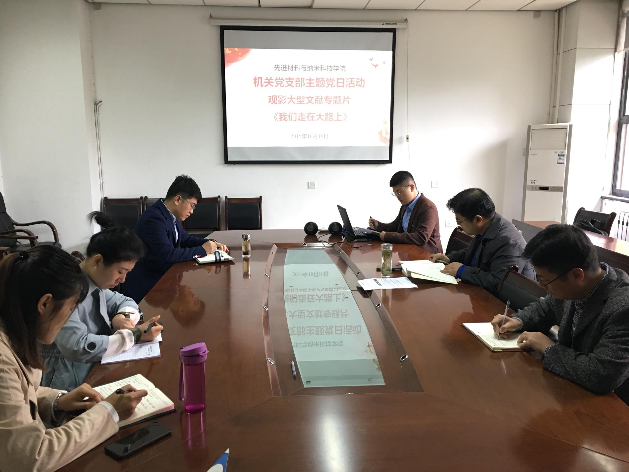 机关党支部在G119会议室开展了“我和我的祖国” 红色观影主题党日活动。活动中支部全体党员一起观看了大型文献专题片《我们走在大路上》第一集——新中国诞生,聆听历史回音,追寻红色记忆,接受红色洗礼。WG电子