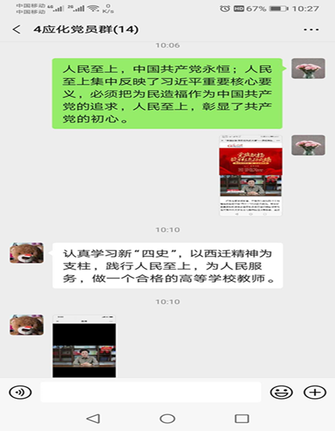 领导班子成员、机关工作人员、本科生支部部分党员和研究所联合支部教师学生党员在南校区G118会议室集体观看了“党旗飘扬,筑牢红色防火墙”高校党组织战“疫”示范微党课第三讲。各支部也积极响应WG电子