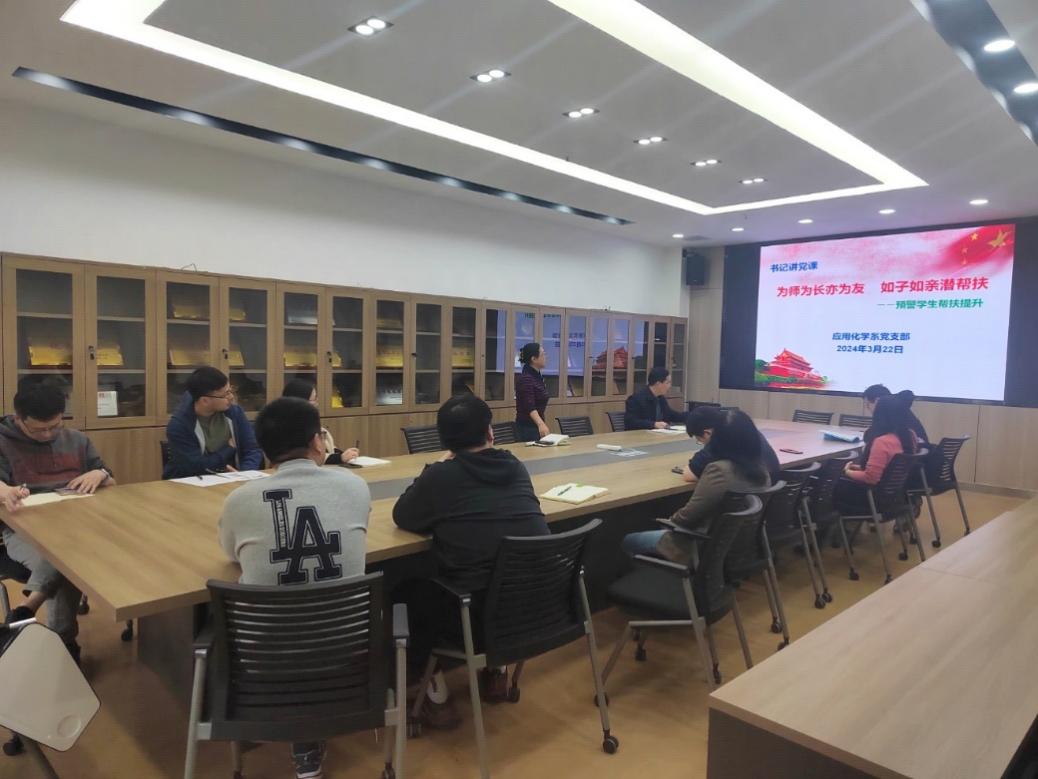 (通讯员 庞海丽 周利君)为全面贯彻党的教育方针,落实立德树人根本任务,充分发挥党员教师先锋模范作用,3月22日应用化学教师党支部开展了以“为师为长亦为友 如子如亲潜帮扶”为主题的书记讲党课活动,推进党员教师与WG电子