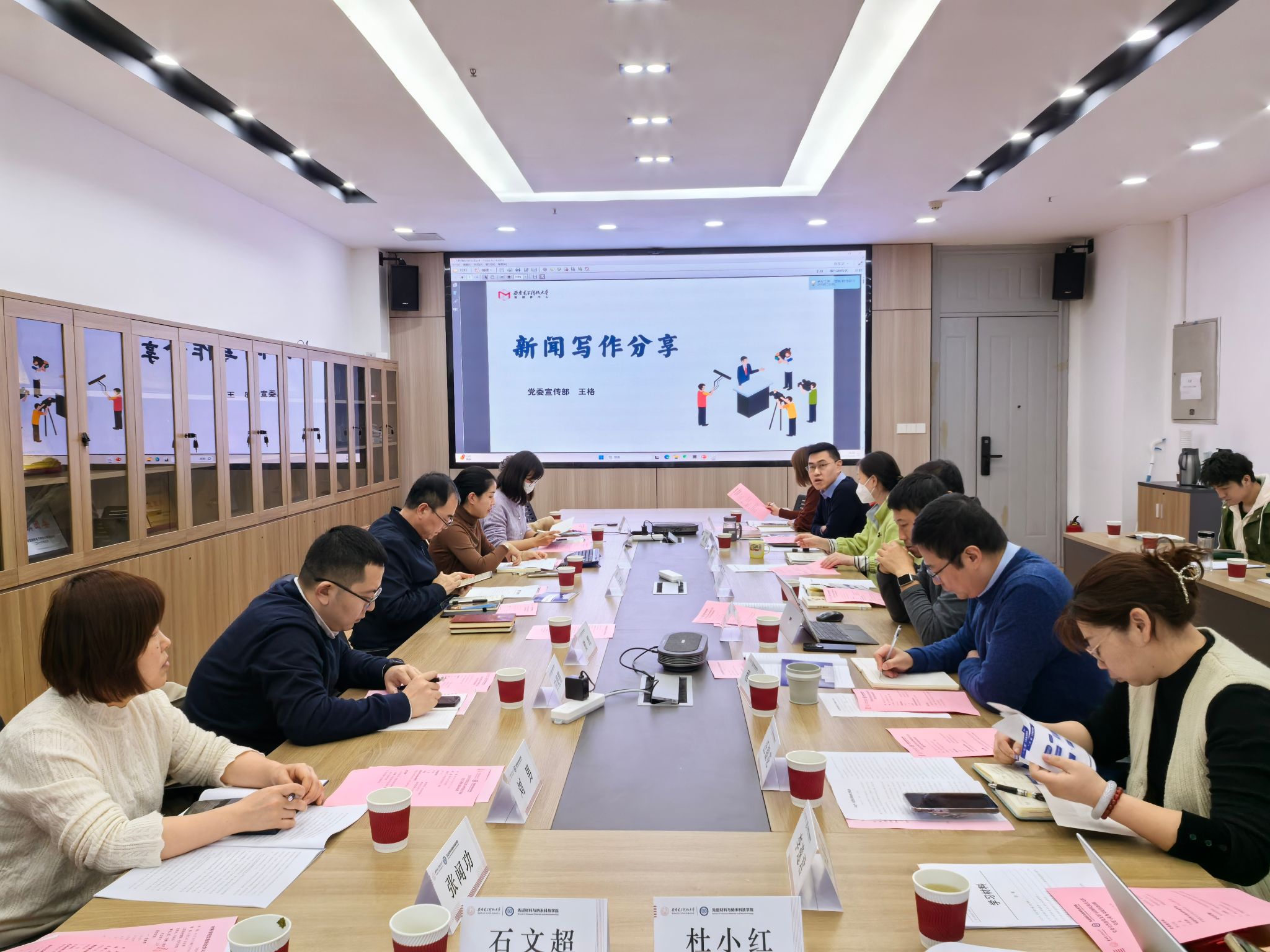 宣传部支部王格、白毅鹏围绕新闻稿撰写详细分享经验。在新闻写作分享中,王格深入剖析人物专访的核心要素与撰写技巧。她指出,人物专访不仅仅是对人物经历的简单罗列,更要深入挖掘人物的精神内涵与独特魅力,通过生动的细节描写和精准的语言表达,使人物形象跃然纸上,让读者能够深刻感受到专访对象的人格力量与价值追求。她结合具体案例,从选题策划、采访提纲拟定、采访过程中的沟通技巧到稿件的谋篇布局、语言润色等各个环节,进行讲解。白毅鹏就会议、活动类新闻稿件采访准备、采访过程和会后写作展开业务交流。他提到,活动会议新闻稿要在有限篇幅内清晰地传达活动的核心内容、重要意义与主要成果,他还分享了一些在实际撰写过程中常见的问题与应对策略,语言言简意赅,与会同志纷纷表示收获满满。