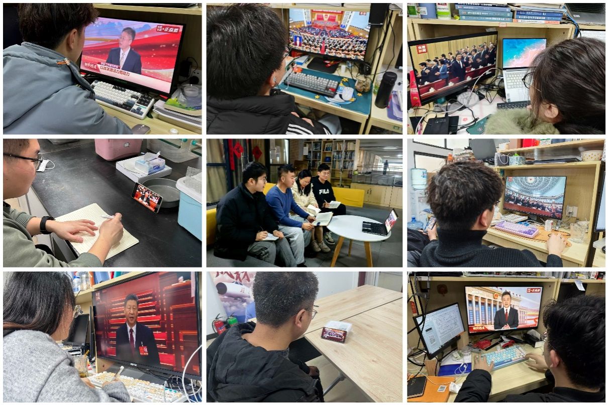 WG电子 领导班子成员、机关管理干部、各支部师生党员代表以及预备党员代表在南校区G142会议室集体观看学习,大家全体起立奏唱国歌,认真聆听强总理政府工作报告。直播结束后,各系所、各支部教师学生结合本职工作和学习,开展热烈讨论和交流。