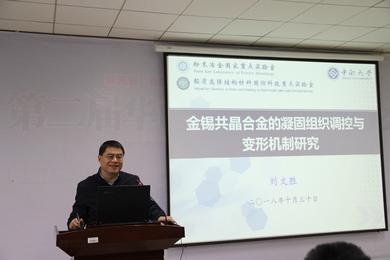 对4位专家学者的到来表示热烈欢迎,并就中南大学刘文胜教授、中国工程物理研究院新能源研究所张文华教授、空军工程大学的马华教授以及北京理工大学吕勇军副教授等个人情况进行了简短介绍。在学术报告环节,刘文胜、张文华、吕勇军立足自己的研究领域,分别作了题为《金锡共晶合金的凝固组织调控与变形机制研究》、《新型太阳能材料与电池应用研究》、《非晶态体系的弛豫动力学研究》的学术报告,将自己最新研究成果和进展进行了分享,并和与会师生进行了深入探讨,交流了材料科学发展的新思想、新理论和新应用,共同探索材料学科最新的发展趋势。报告会上掌声不断,师生们沉浸在浓郁的学术氛围、激烈的思想碰撞和交流中。杨如森教授主持了学术报告环节。