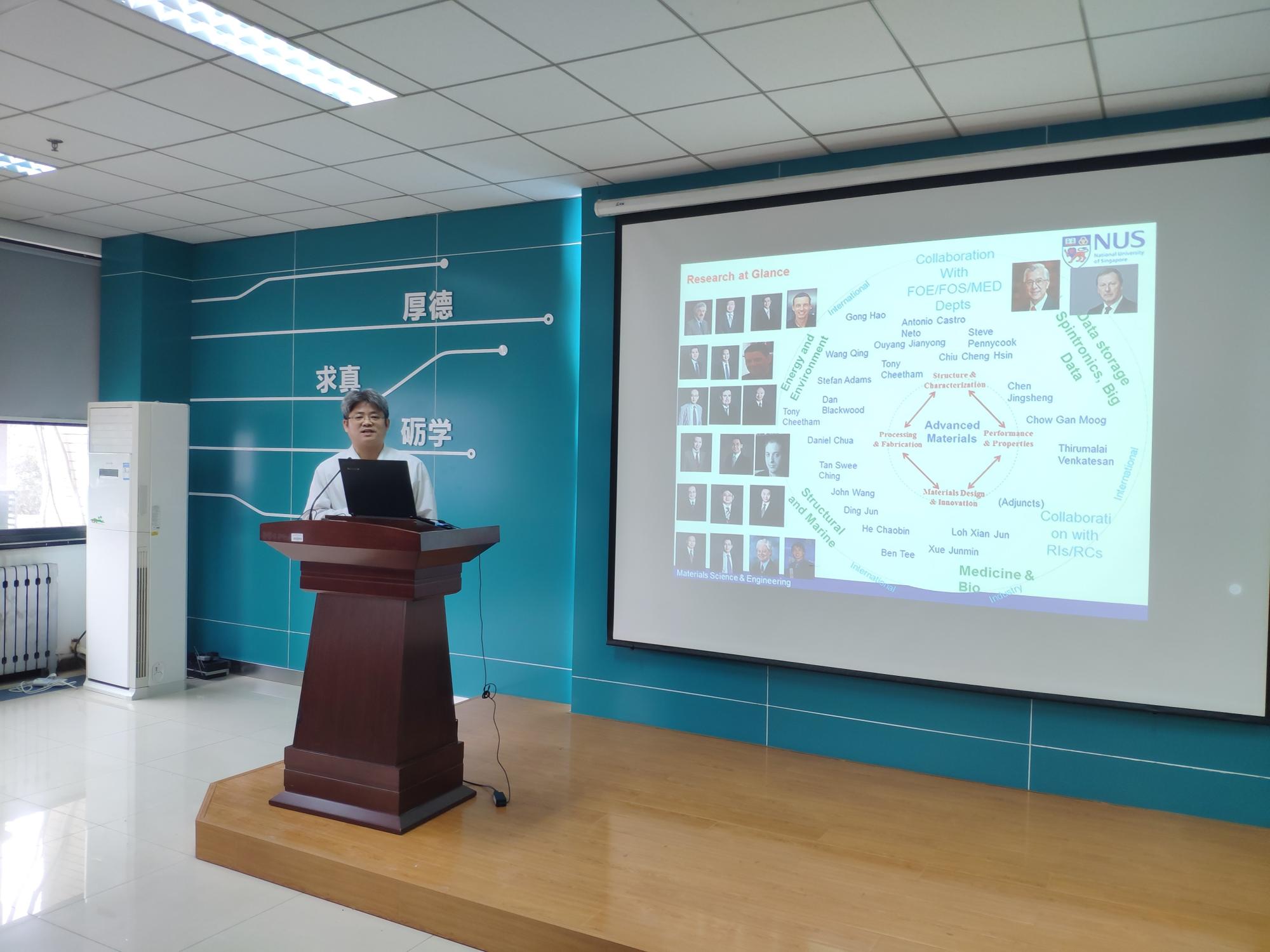 )“3+1+1”联合培养项目宣讲会在南校区G栋118报告厅举行,新国大材料科学与工程学系副系主任丁军教授、新国大材料科学与工程学系欧阳建勇副教授、新国大苏州研究院“3+1+1”项目办公室戴念老师、WG电子