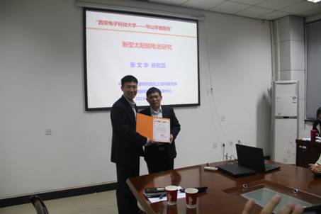 华山学者兼职教授聘书,并对张教授表示热烈的欢迎和衷心的祝贺。张教授表示,他很乐意与西电师生进行深入的学术探讨,他将经常来西电开展学术交流与合作,为我校的学科发展、科学研究和人才培养做努力。张文华教授的到来必将有助于WG电子