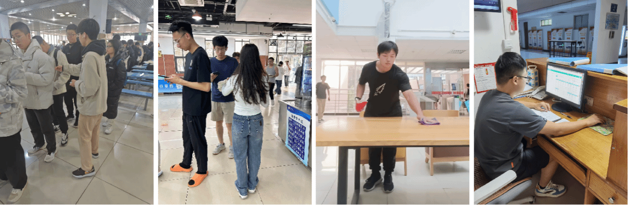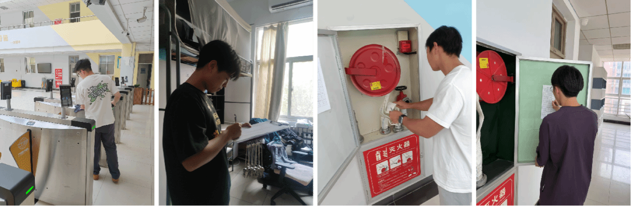 宿舍管理岗位上,同学们化身“临时楼管”,协助处理宿舍日常事务,包括人员登记、房源信息核查以及消防设施排查等,在深入了解宿舍管理工作的复杂性与重要性的过程中,同学们进一步强化安全意识和责任担当,也更加珍惜后勤工作人员的辛勤付出。在消防检查岗位,同学们认真学习消防设备的使用方法,并对消防设施进行安全核查登记,切实掌握应对火灾等突发安全事件的基本技能,为校园安全筑牢防线。餐饮服务岗位上,同学们积极参与文明就餐倡导与“光盘行动”宣传,耐心引导师生在餐厅门口有序停车以及餐厅内同学们的就餐秩序,为营造文明、有序的校园餐饮文化氛围贡献力量。