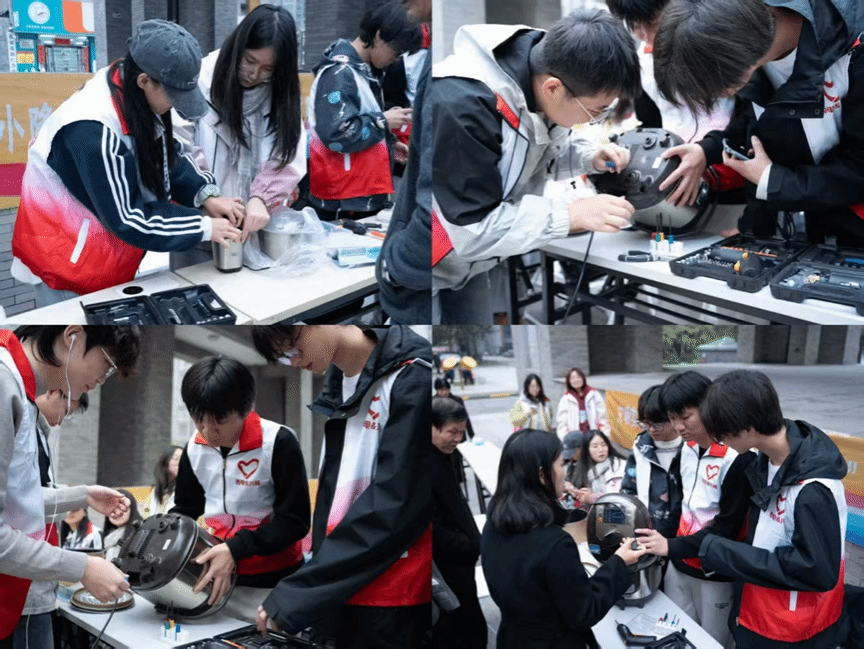活动现场气氛热烈,秩序井然。同学们耐心与居民沟通电器使用情况,认真记录故障现象,在动手实践中锤炼技能,在解决问题中收获成长。一件件修复成功的电器交回居民手中时,洋溢的笑脸与真挚的感谢成为秋日里最温暖的风景。尽管部分电器因配件不足或损坏复杂未能完全修好,志愿者们仍细致完成拆解分析与重新组装,并向居民详细说明情况。