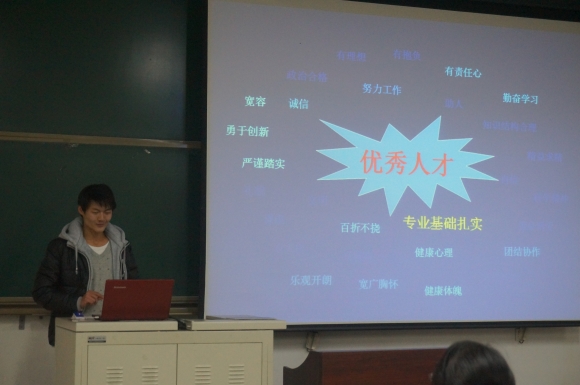 优秀学长席前、王虎、胡家望,学姐陆家缘分别做了报告。他们向同学们详细地介绍了自己的一些学习经历,以及对大学生活的看法。同时,他们也介绍了一些先进的学习方法,为同 学提出切真务实的建议。很多同学听得很投入,对自己的大学生活有新的认识。精彩的报告不时博得阵阵掌声。报告会结束后,他们与大一学生进行交流互动,希望同学们规划好自己的大学生活,在大学提升自我,锻炼自我,丰富自己的大学生活。