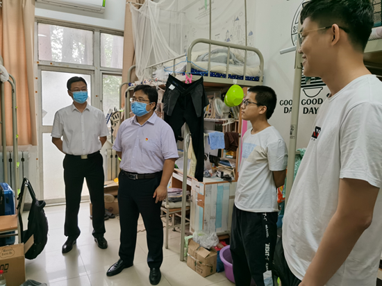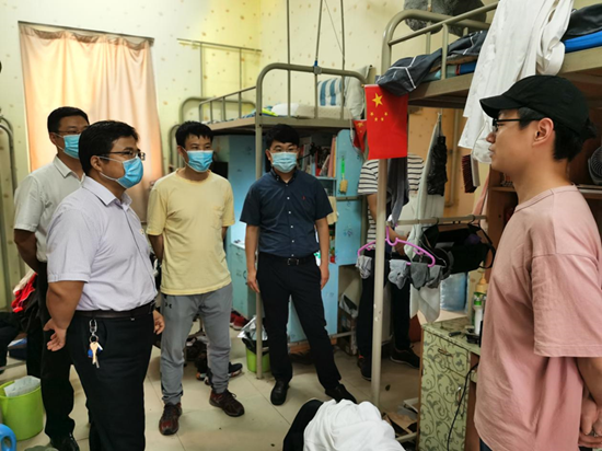 在慰问过程中,领导班子与返校同学们亲切交流,了解他们疫情期间的学习生活情况,并再三嘱咐同学们留校期间务必遵守学校相关防护要求和公寓管理规定,做好宿舍通风消杀等防控措施,确保人身财产安全,同时保持与家长和辅导员的经常性联系。