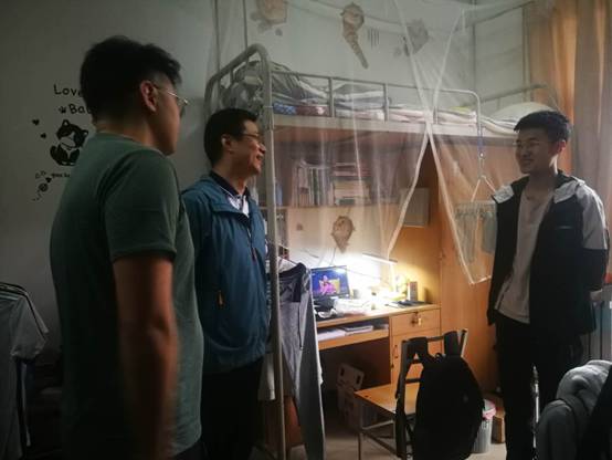 班子和全体学工干部走访了各年级本科生宿舍,了解学生节前思想动态,向学生介绍“双节”期间学校及WG电子