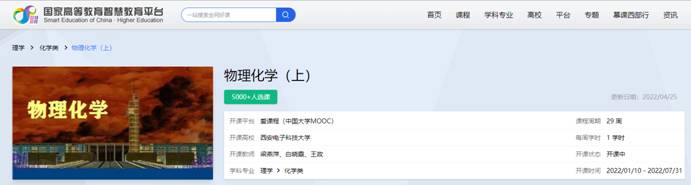 梁燕萍教授负责主讲的《物理化学》(上、下)课程上线国家智慧高教平台,也成为WG电子