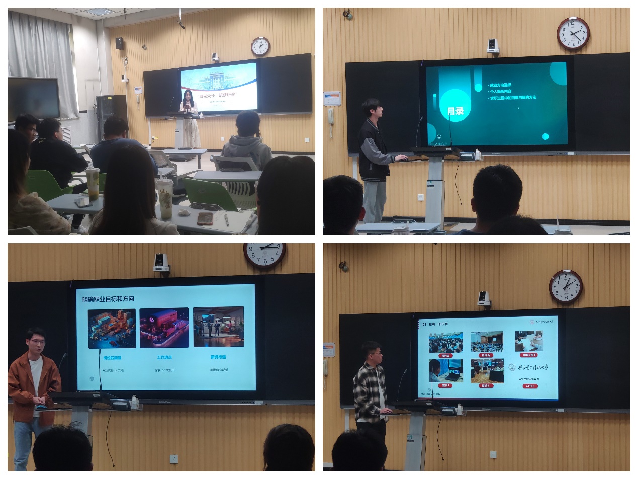 签约华为海思的汪显宇同学则重点讲述了明确职业目标和方向的重要性。他认为明确职业发展方向是面试的第一步且最关键的一步,在了解自己的专业特性、匹配职业方向的同时,应当积极关注秋招时间线,为找到好工作打下好基础。此外,他分享了一些面试技巧,提醒同学们在面试时要结合岗位需求展示自身优点、灵活应对问题、注重礼仪和态度,从而提高面试的通过率。