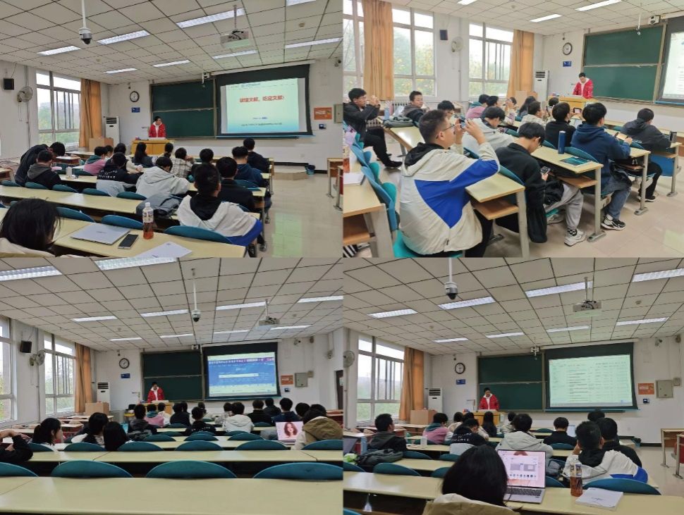 研究生学术辅导员、传感器方向优秀研究生魏庆春担任主讲嘉宾。魏庆春凭借自身深厚的文献阅读和数据检索经验,为在场的本科生带来了一场精彩的分享。他不仅详细讲解了文献检索的策略和筛选技巧,还分享了高效阅读文献、归纳整理信息的实用方法,帮助学生们更深入地理解科研文献,为未来的研究工作打下坚实的理论基础。活动现场气氛热烈,学生们积极参与互动,不仅学习了文献检索的具体操作,还就文献阅读在材料科学研究中的实际应用展开了深入探讨。