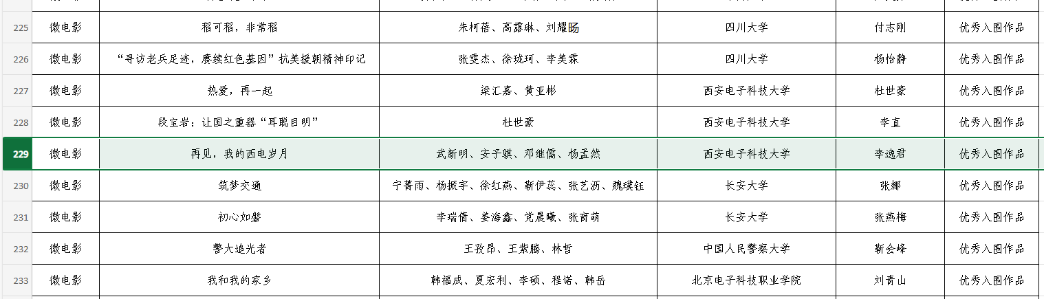 近日,由教育部思想政治工作司和中央网信办网络社会工作局主办的第七届全国大学生网络文化节和全国高校网络教育优秀作品推选展示活动遴选结果揭晓,我院选送的微电影作品《再见,我的西电岁月》荣获第七届全国大学生网络文化节微电影类“优秀入围作品奖”(全校三项之一)。