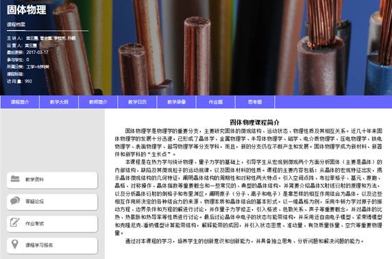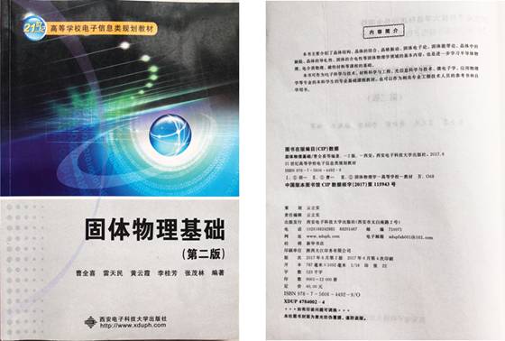 在前期的课程建设中,黄云霞老师和李桂芳老师已经完成了系列教学视频课件的录制,建设和完善了本门课程的门户网站,并参与出版了《固体物理基础》教材。《固体物理基础》是WG电子