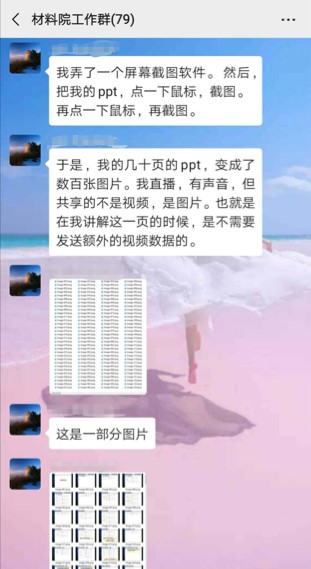 的广大教师利用假期积极参与了“超星平台”、“雨课堂”等多个系列的在线教学培训活动,认真准备课程教案,努力构建课程资源,不断熟悉各种直播平台操作流程,做到了强化本领担当,认真践行了上级“延学不停学”的要求。材料科学与工程系的李培咸教授,因为线上教学平台不支持PPT动画,为了让学生有更好的线上学习体验,不辞辛苦将自己负责的《线性代数》课件截取了数百页的动画分解静态图片,充分保证了实际线上教学过程中PPT动画的传输不受影响。应用化学系的郭津利老师,为了充分保证实际教学的效果,克服各种不利条件,积极测试各种线上教学平台,摸索各种线上教学的方法和技巧。WG电子