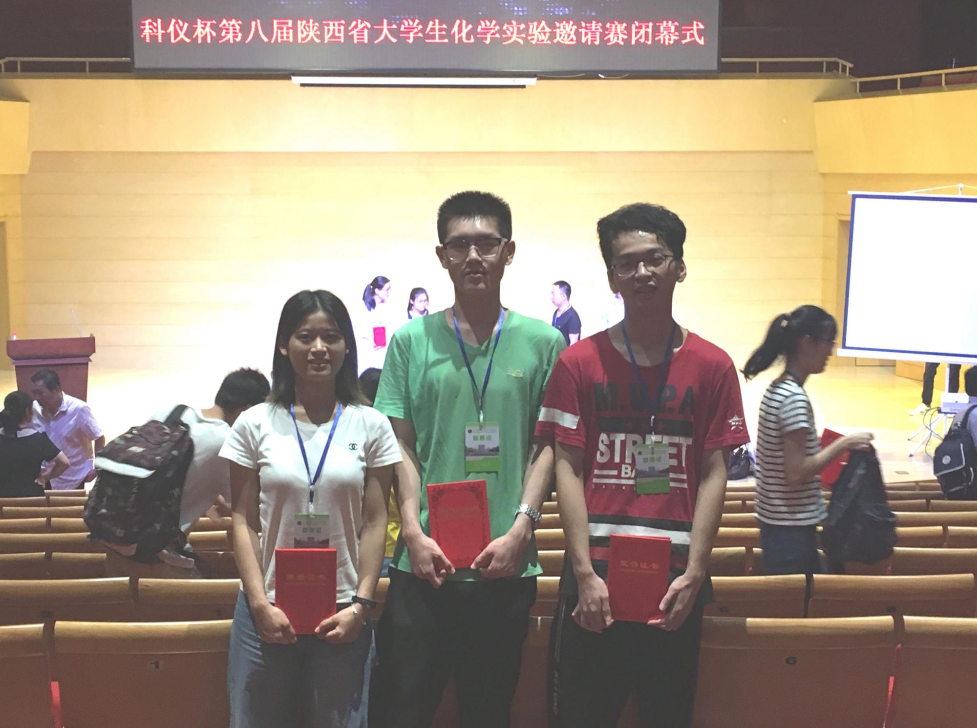 应用化学实验教学中心梁燕萍、朱黎霞及李淑萍老师带队,应用化学专业3名学生组成的代表队参加了竞赛。经过紧张激烈的角逐,西电代表队吴思广同学获得大赛一等奖,张茂迪和王腾同学获得大赛三等奖。